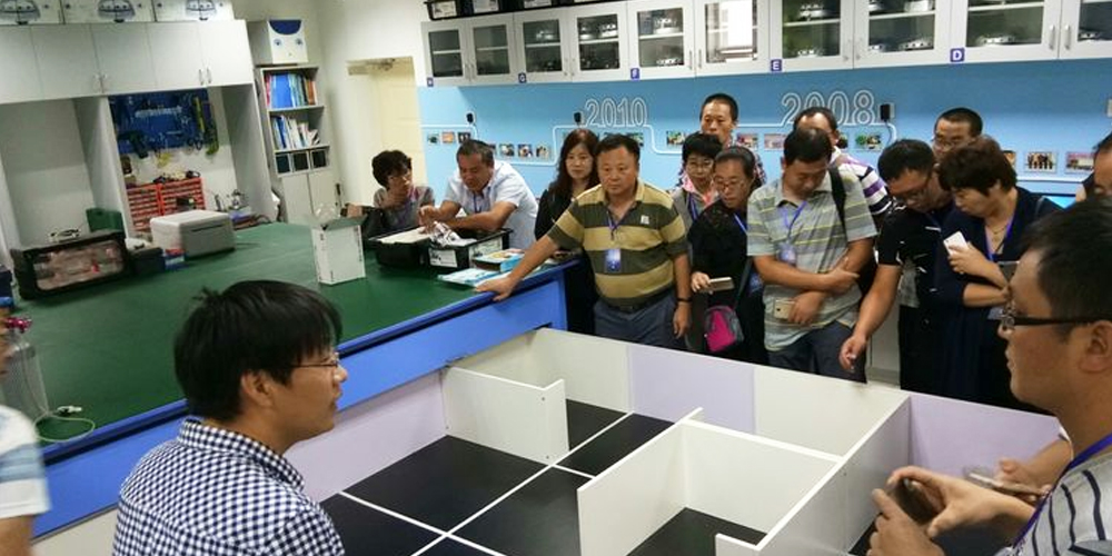阿斑兔將機器人、創(chuàng)客、3D打印、航模等融為一體,研發(fā)、設(shè)計具有情景體驗、創(chuàng)意生成、原型制作、展示交流等多功能為一體的機器人教育教學(xué)場所,即創(chuàng)新教育實驗室,針對不同年齡段學(xué)生的特點、學(xué)校學(xué)情等,為其提供足夠的空間、設(shè)備和完善的課程體系。